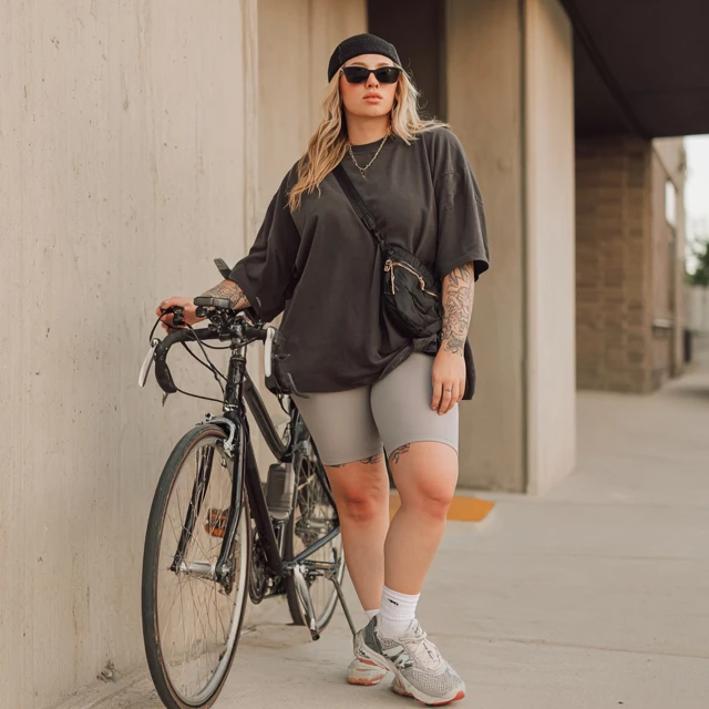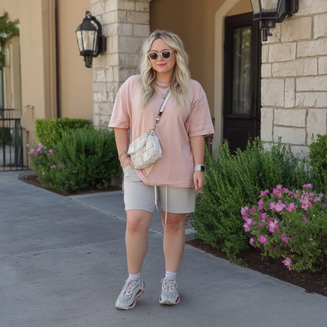 Why It Works: Biker shorts give freedom of movement without riding up. The oversized tee adds casual chic and coverage if you want it.